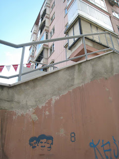 The one on the left is Müslüm Gürses, "Gürses" being a scene name meaning "strong voice". His talent and his special style have put him to a different place among other folk singers. In his songs he mostly expresses sorrow and painful feelings (listen here). He is considered a cult figure in Turkish folk music and has a very dedicated group of fans, most of whom being young, low-income urban people. He is mostly called Müslüm Baba ("Papa Müslüm") among them (wikipedia).